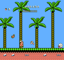 Adventure Island 2 (NES, 1991) Developer: Now Production Publisher: Hudson Soft I feel like this is going to be a regular event for the oldest games I play in this little endeavor; I have no idea what the story of the game is. I had to go to Wikipedia to see what it is. My guess is that the entire story of the game is contained in the instruction manual, which is something I also want to build a digital collection of. So without that explanation, I have a…grass-skirt wearing dude with a baseball cap riding skateboards, throwing stone axes and riding dinosaurs. I definitely played this game as a child, probably renting it from Blockbuster way back when.